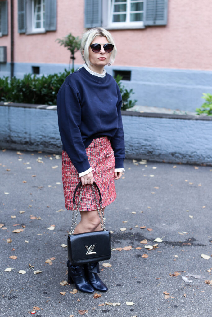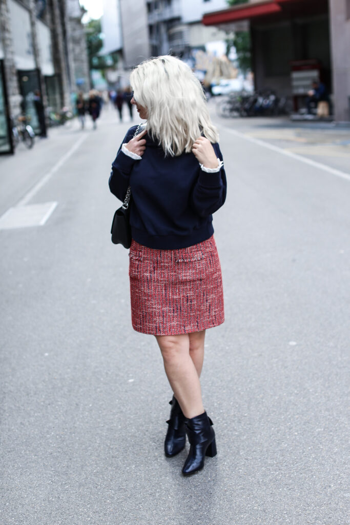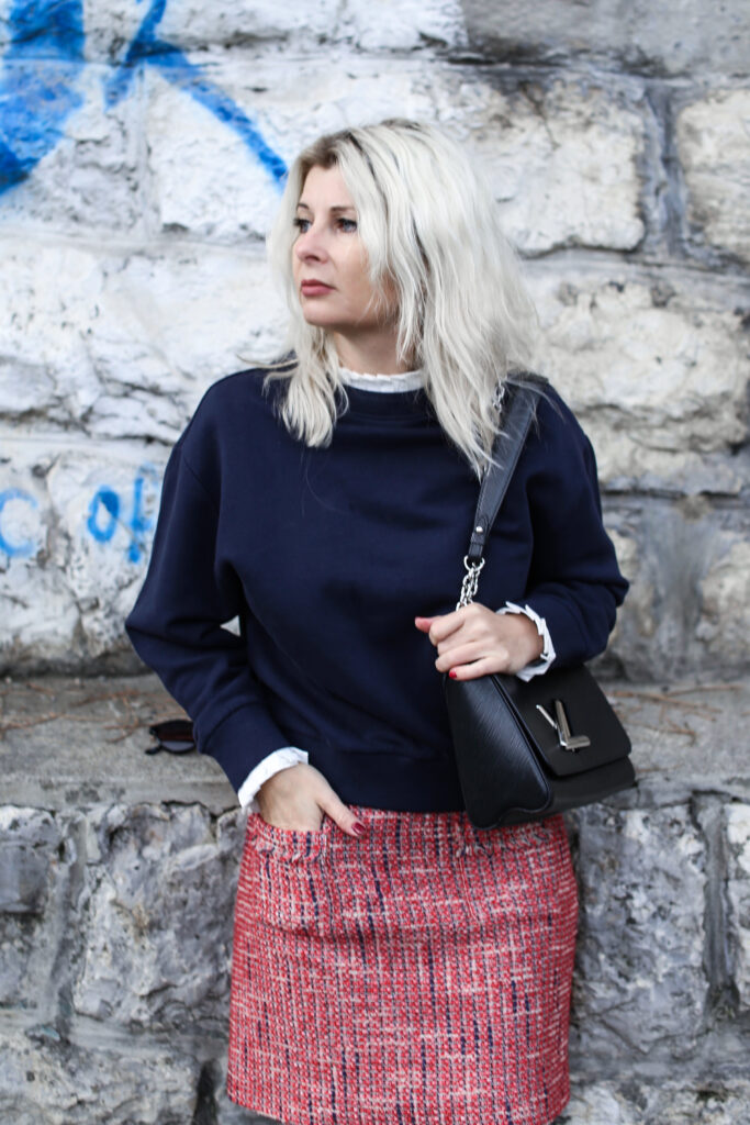 Die klassische Bürouniform (d.h. Kostüm) gehört nicht gerade zu meinen lieblings Outfits. Mein neuer Tweed-Rock in einer herrlichen Pfirsichnuance von Comptoir des Cotonniers ist praktisch ein Bestandteil eines Kostüms. Der Tweed ist ein Material, das schon standardweise in die Herbst/Wintergarderobe gehört und kehrt jede Saison in den neuen, an die Trends angepassten Versionen zurück.