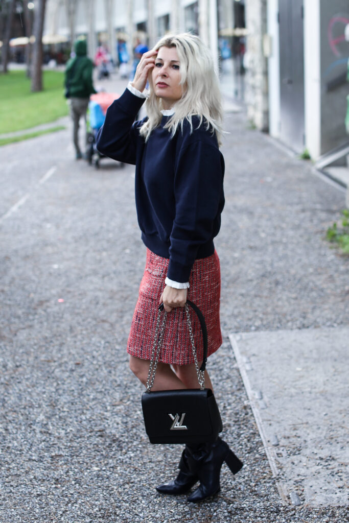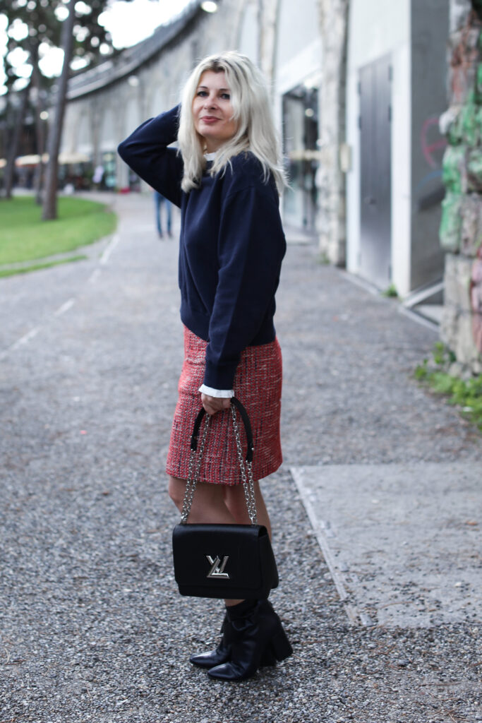 As a model, I had to work a lot with my posing as well. Practice makes better Maeddi and you will definitely get the hang of it. You look Fall ready in your tweed skirt. I adore your boots. Great pairing with your LV bag. Thank you for sharing. Enjoy your weekend.