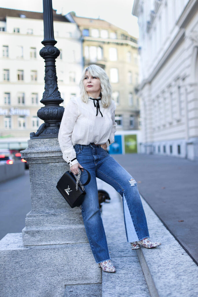 Es passiert mir selten, dass ich mir bei einem Outfit nicht sicher bin, welches Teil der Keypiece ist. Meine Looks kreiere ich erst nach dem ich den Hauptteil bestimme und die restlichen Klamotten passe ich entsprechend den Trend und den gegebenen Stil an. In diesem Fall sollte der Keypiece die weisse Bluse sein, aber ich finde, dass die Jeans und Booties genau so viel Aufmerksamkeit verdienen.