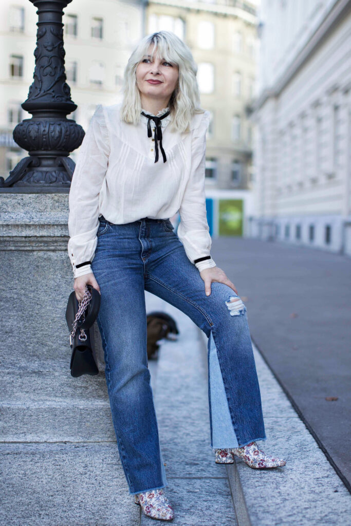 This is definitely one of my favourite look !!! Actually I’m looking for the same jeans honey !!! You styled them perfectly with this almost Victorian blouse and divine booties !!! I feel you my dear – love the white blazer blouse and shirts and cannot help myself xo xo ?